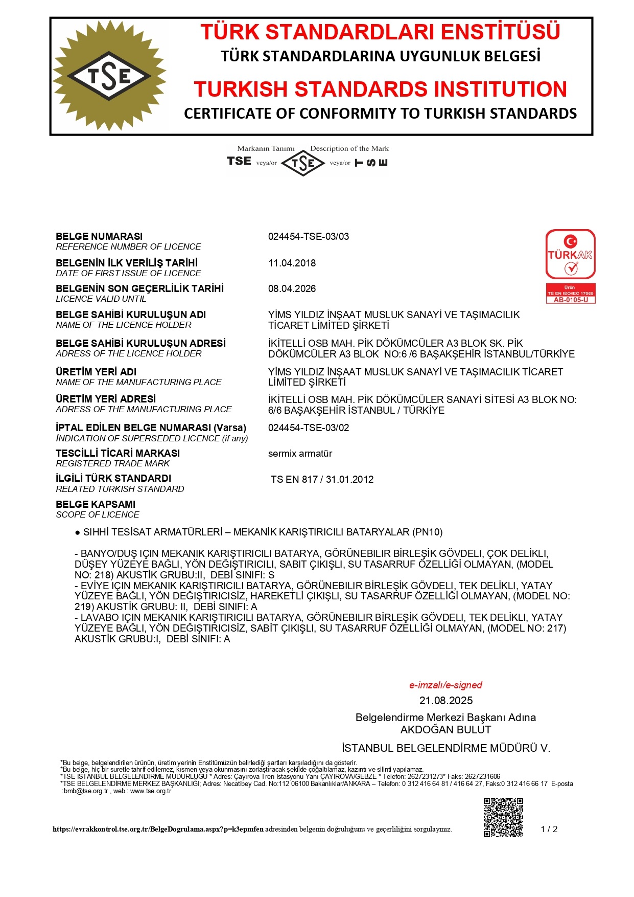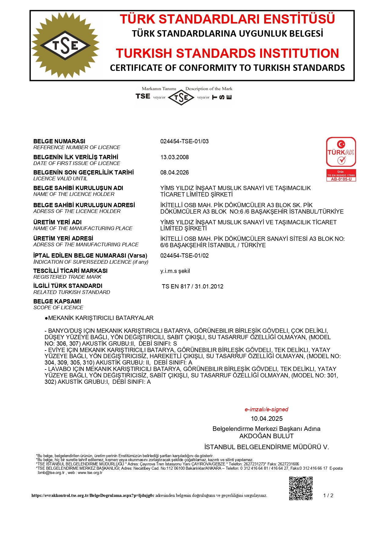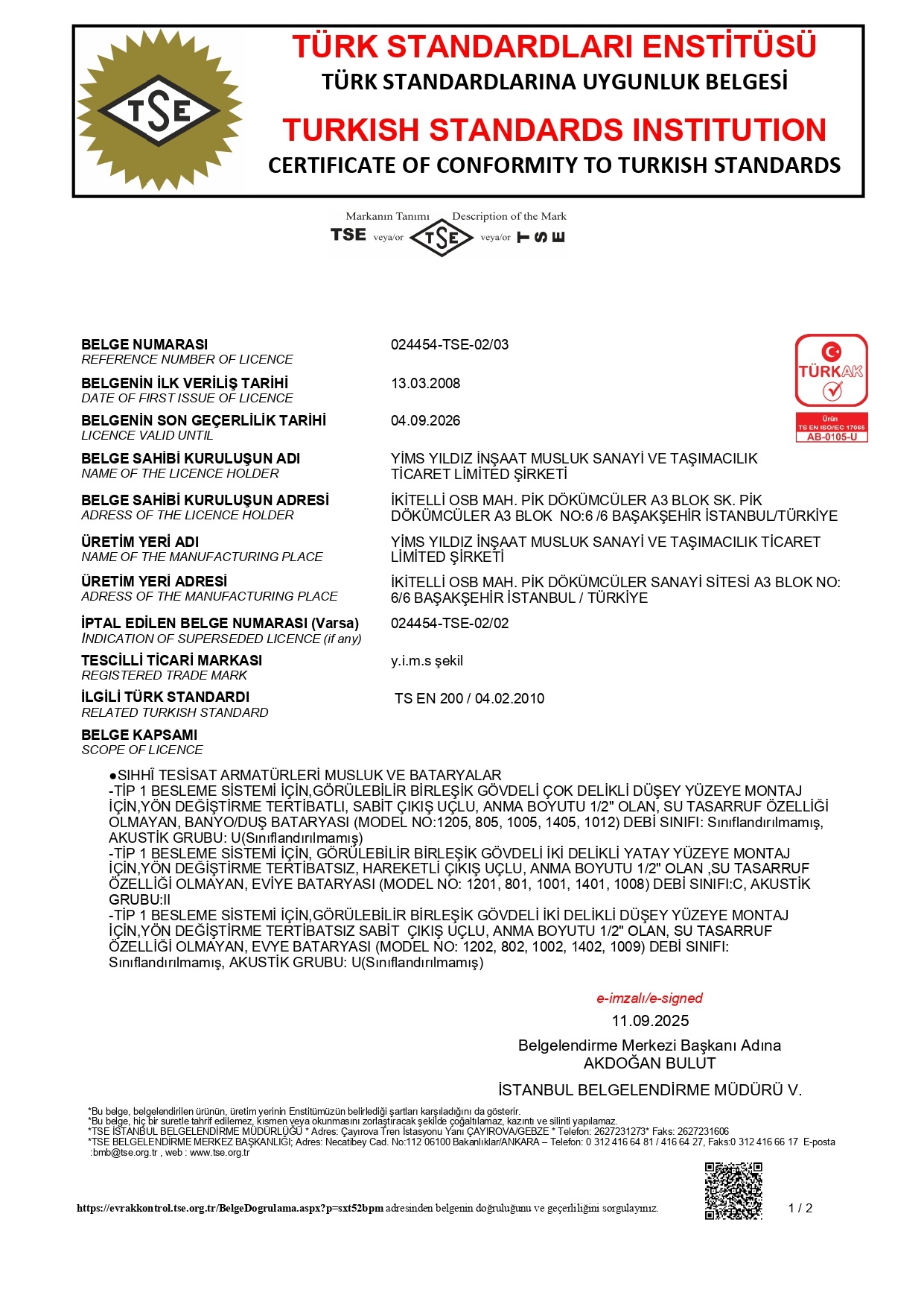 YILDIZ KLASİK BATARYALAR VE MUSLUKLAR